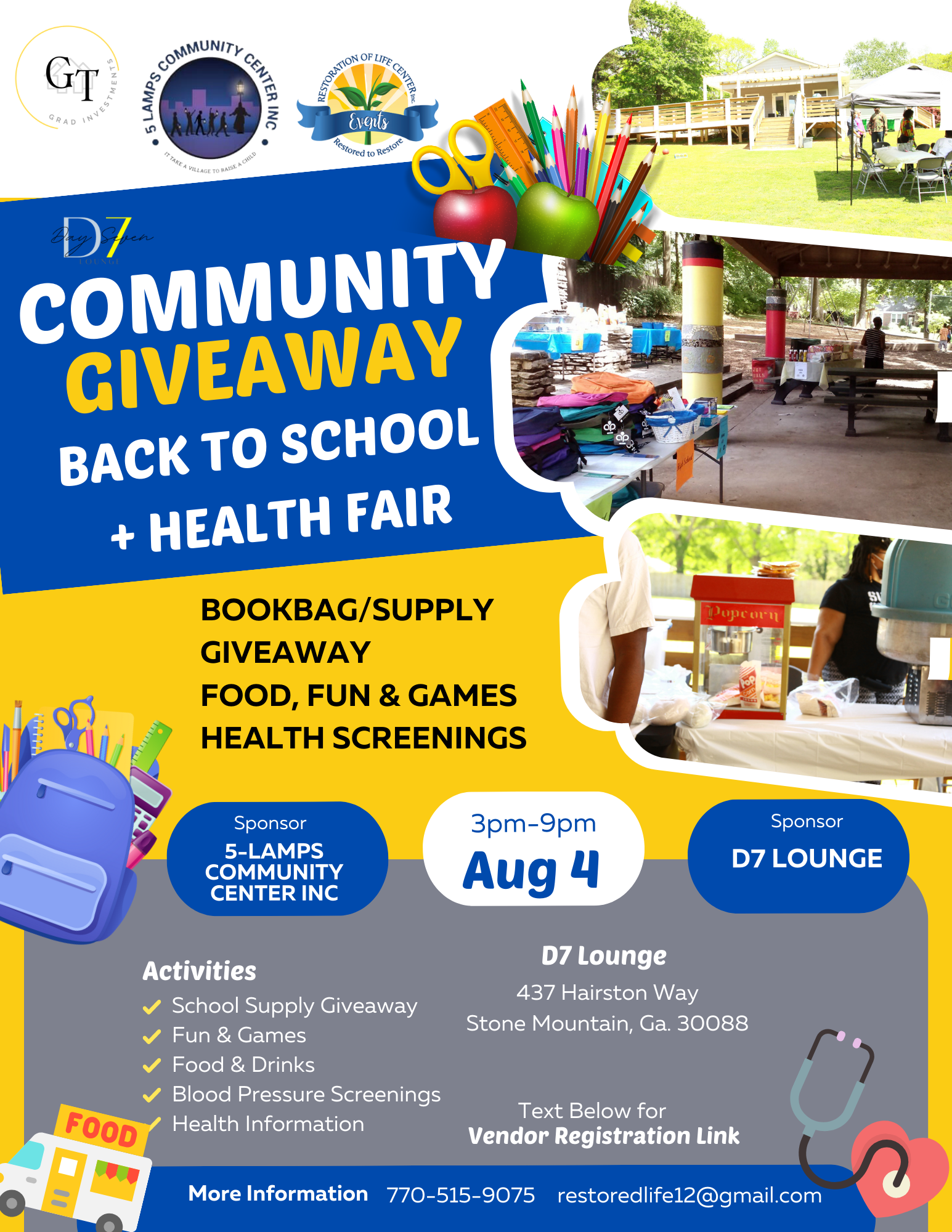 Do you offer services to help the community in the Stone Mountain, Ga area? or Do you have a food/treats/drink business and want to vend?
